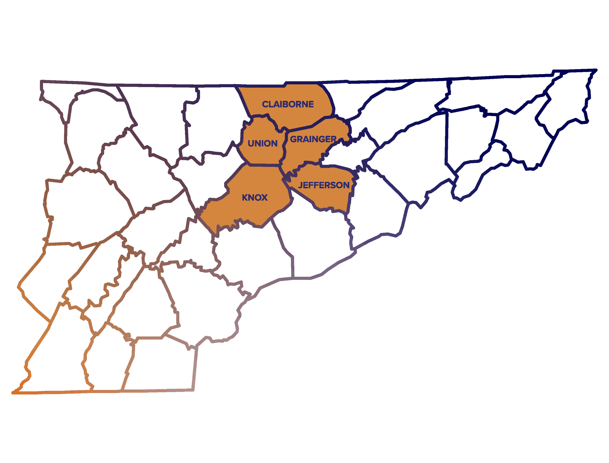 Our service areas include Knox, Claiborne, Grainger, Jefferson, and Union Counties.